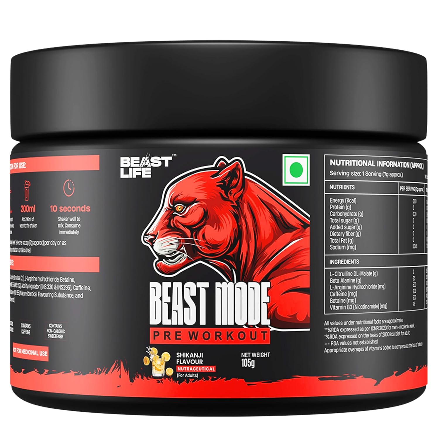 | Beastlife Pre-Workout (this product) | 7.0/10 | ₹14.97 | Lowest cost per serving | Low dosing score |