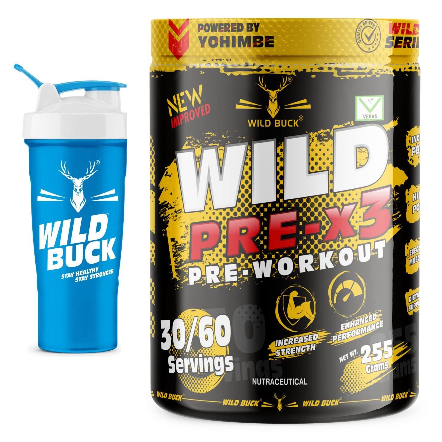 WILD BUCK Wild Pre-X3 Hardcore Pre-Workout Supplement,Energy Drink With Creatine Monohydrate,Arginine Aakg,Beta-Alanine - For Men & Women Free Shaker,2 Count